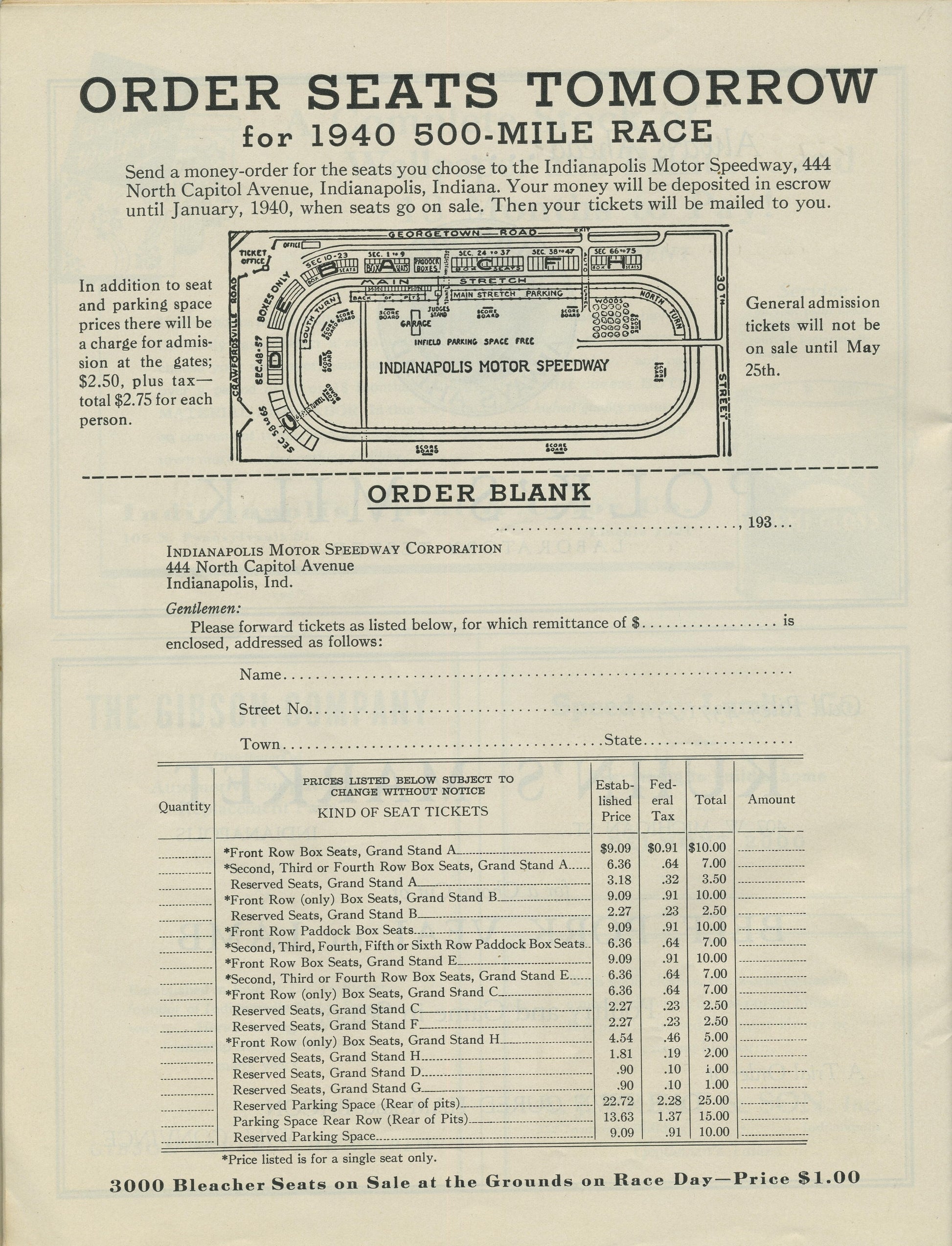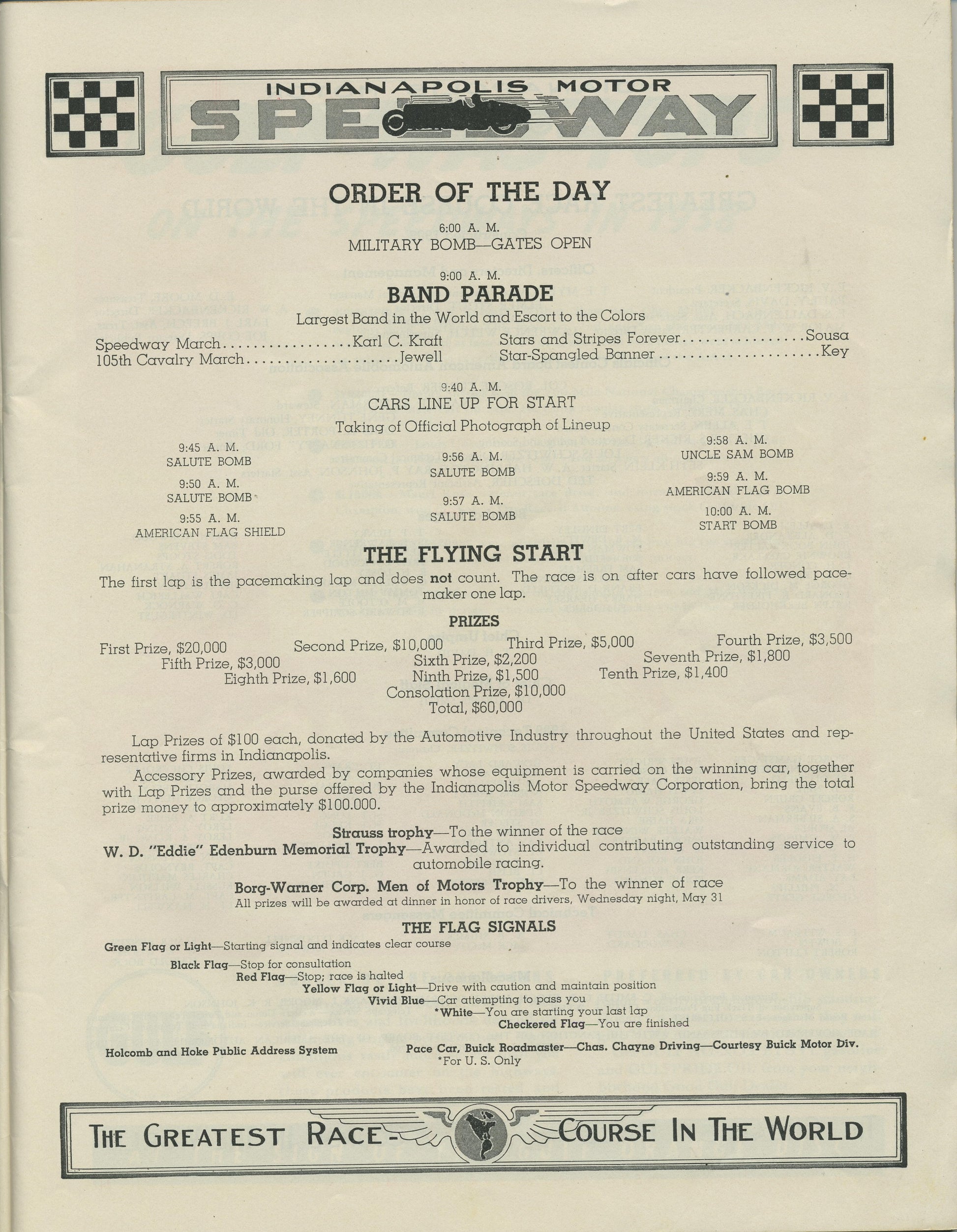 Fantastic 1939 Indy 500 program. This program is in excellent shap. All pages intact and stapled in book. No tears or rips. 1 small blemish on rear cover. Ecellent opportunity to get a pre-WWII program!