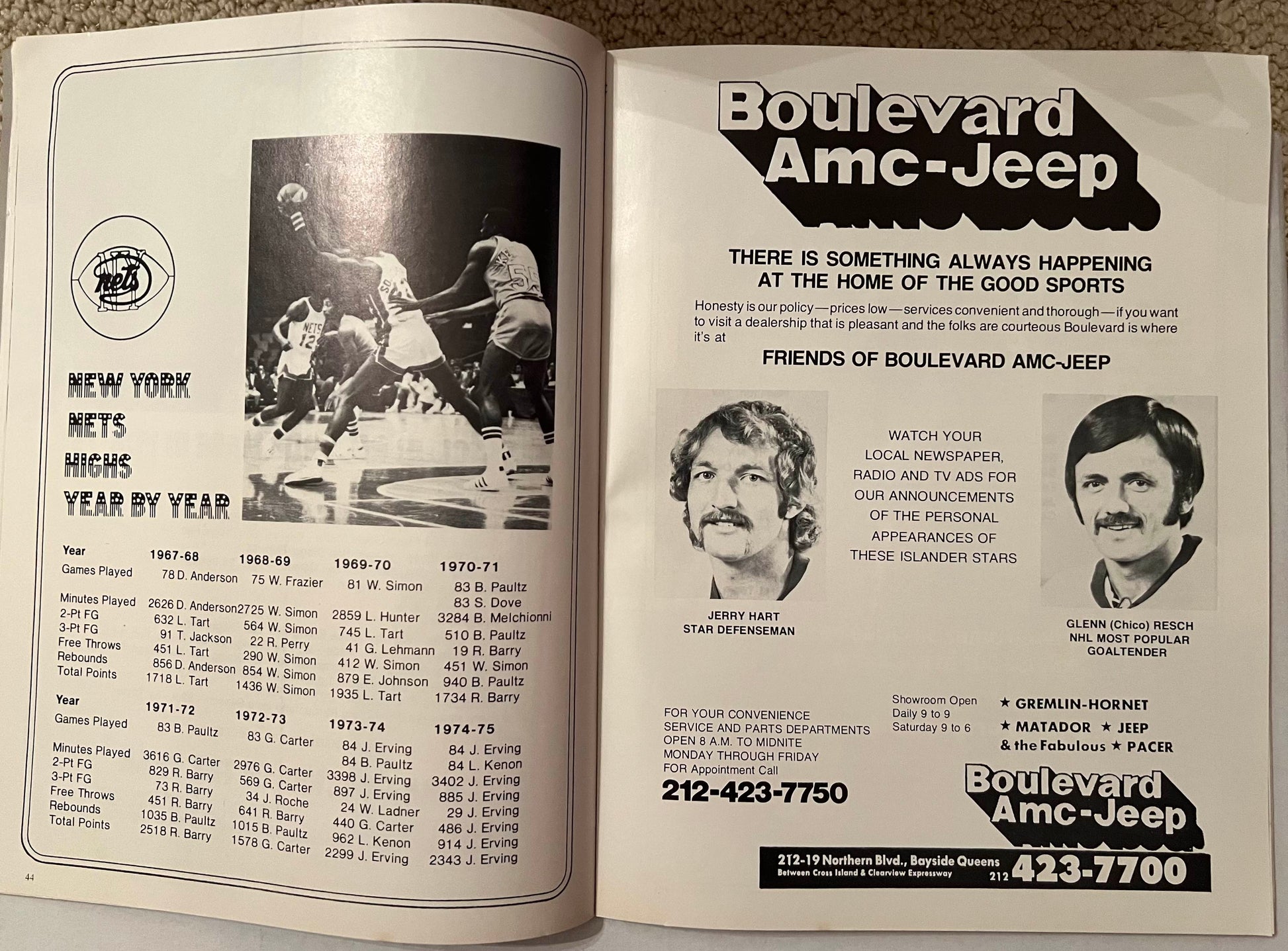 1975-1976 ABA New York Nets Complete Program Dr. J. v San Antonio Spurs Red Cover