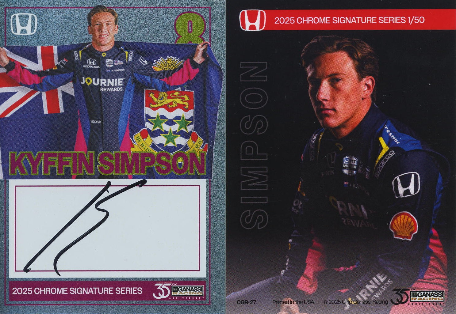 2025 Chip Ganassi Racing Card Kyfin Simpson Autograph 1/50 produced