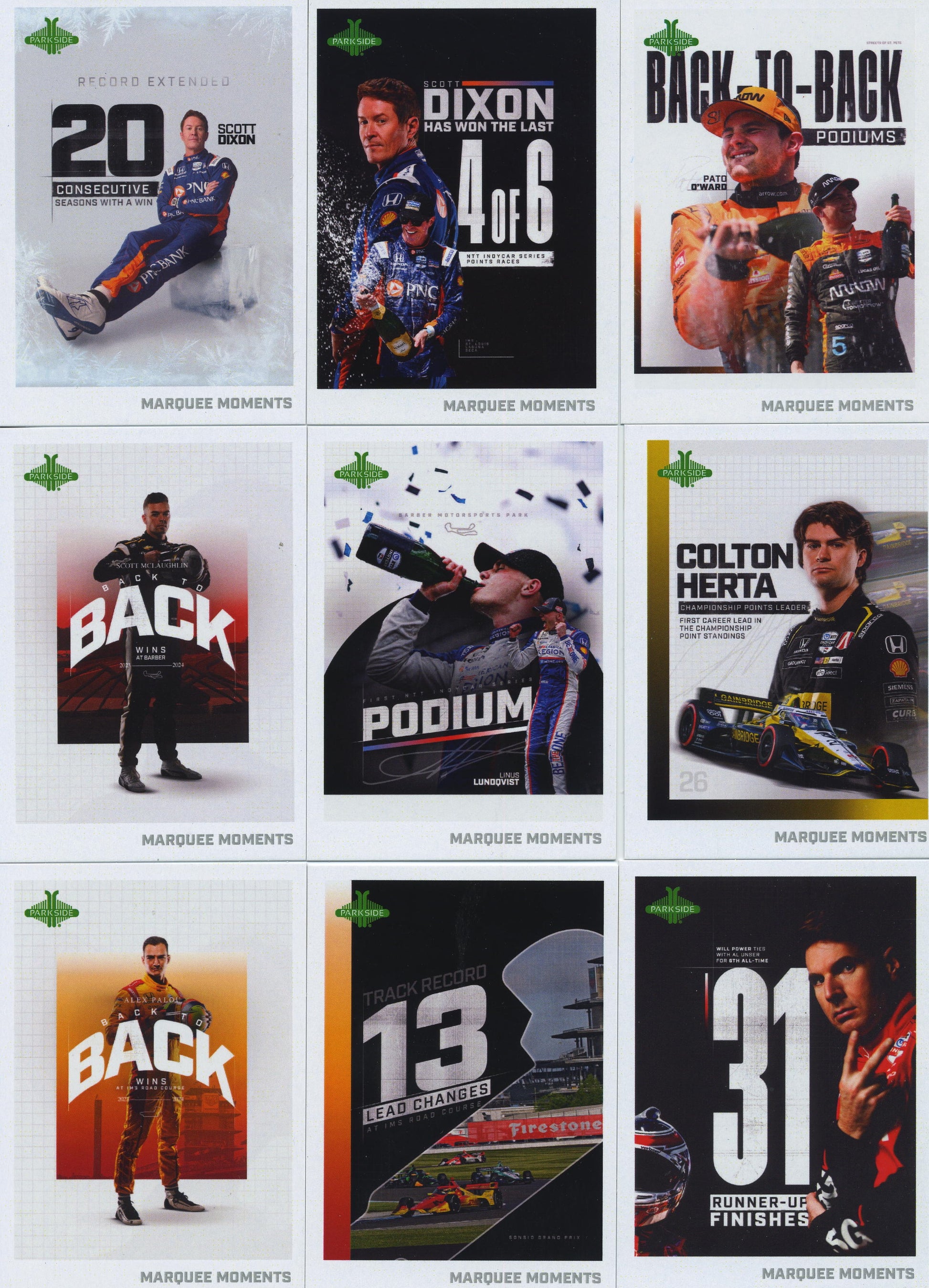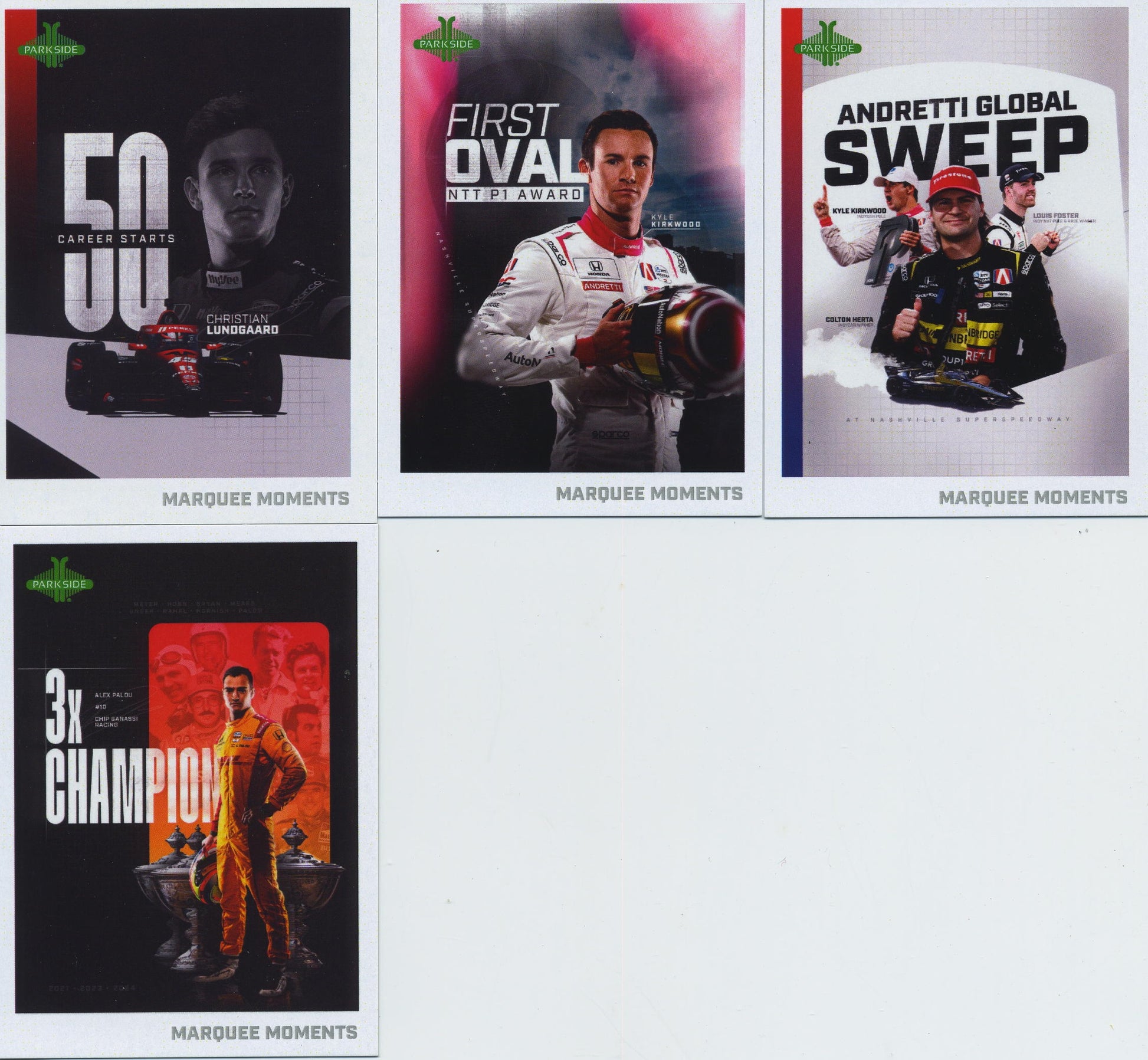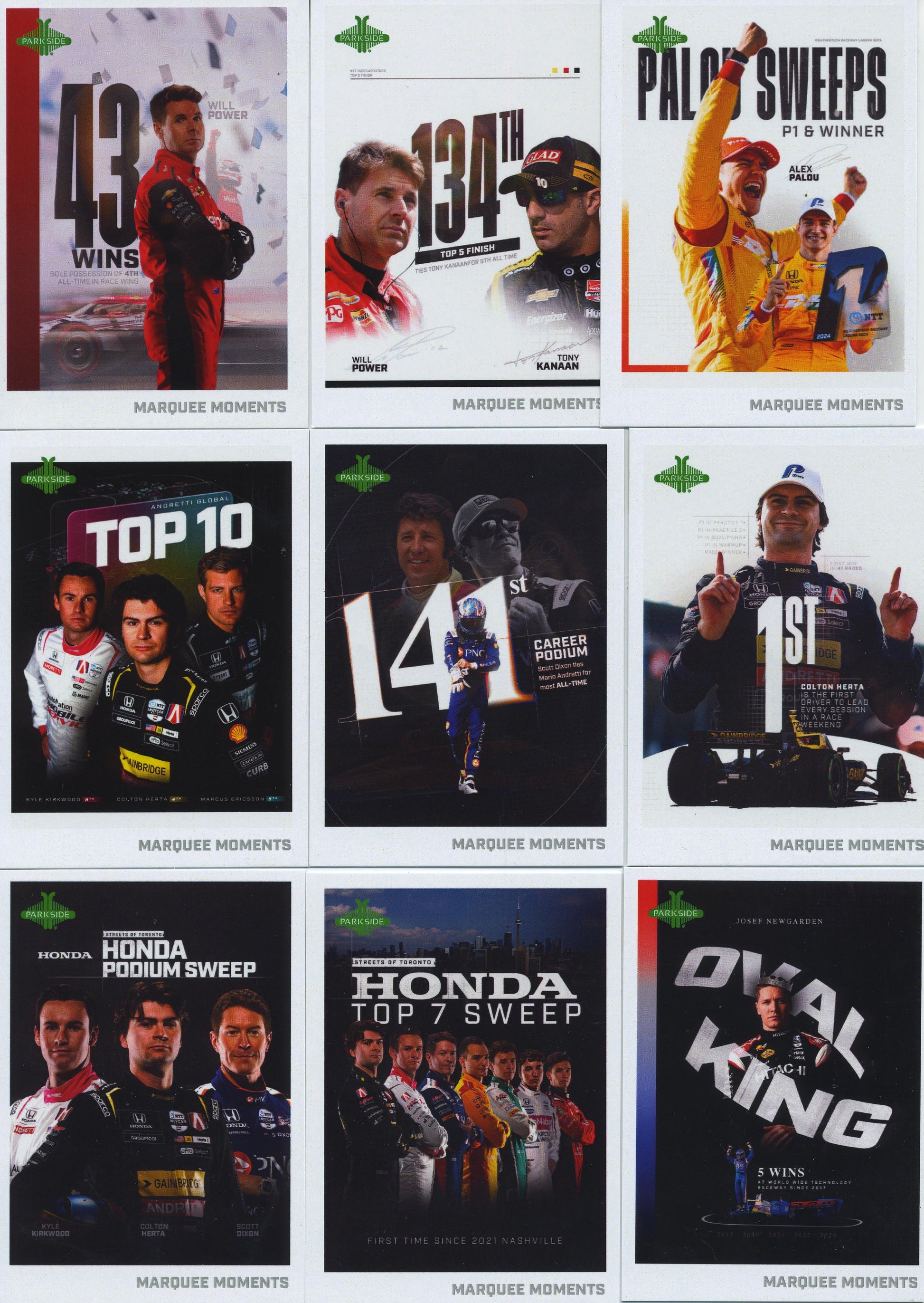 2025 Complet 58 card Marque Moment set!. This is an insert set to teh 2025 Parkside IndyCar card collection.