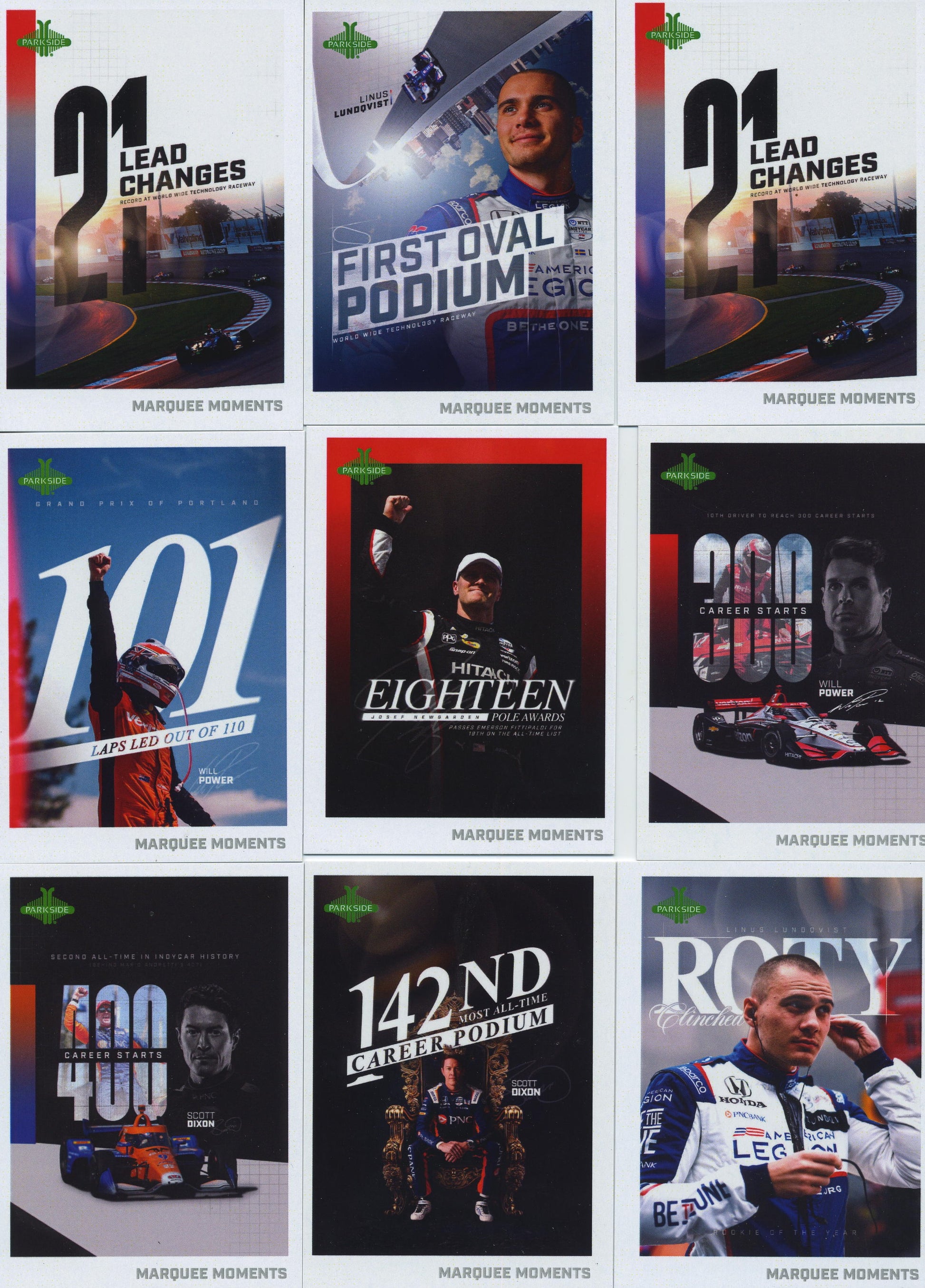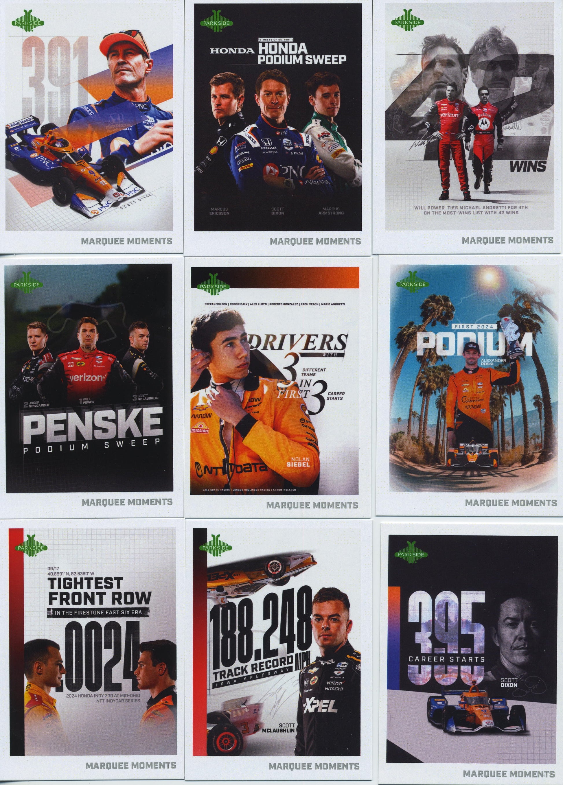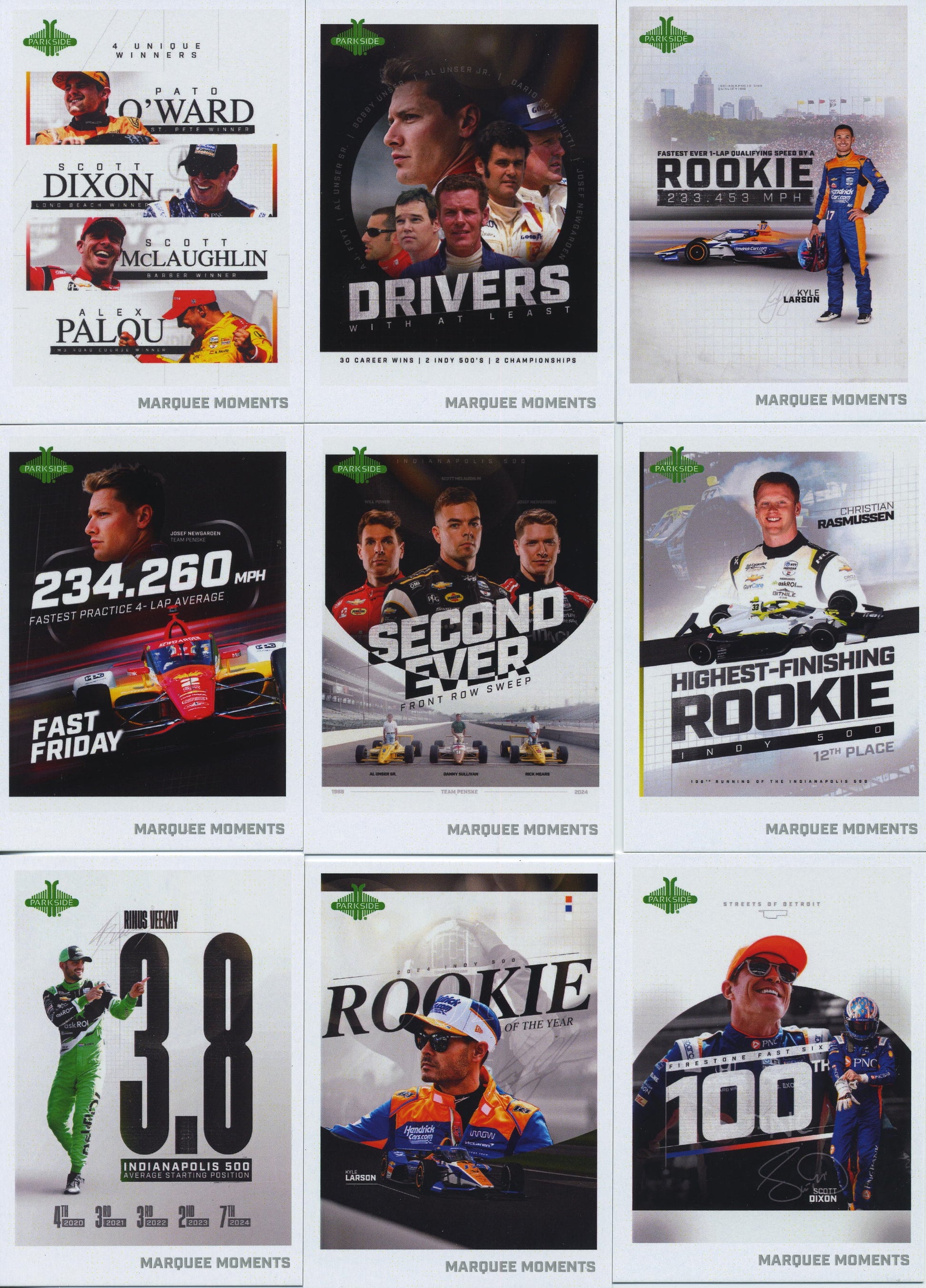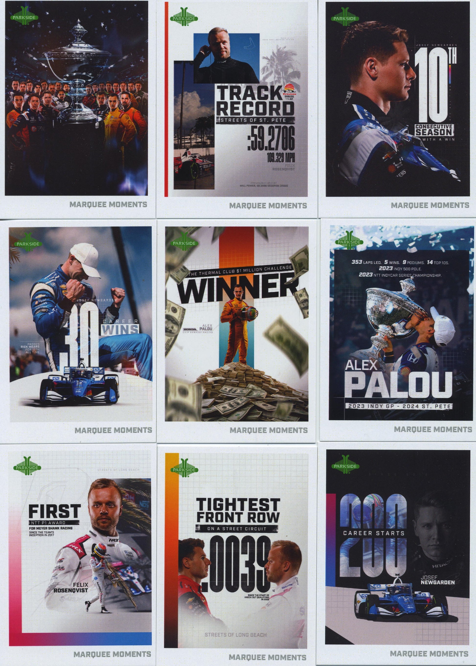 2025 Complet 58 card Marque Moment set!. This is an insert set to teh 2025 Parkside IndyCar card collection.