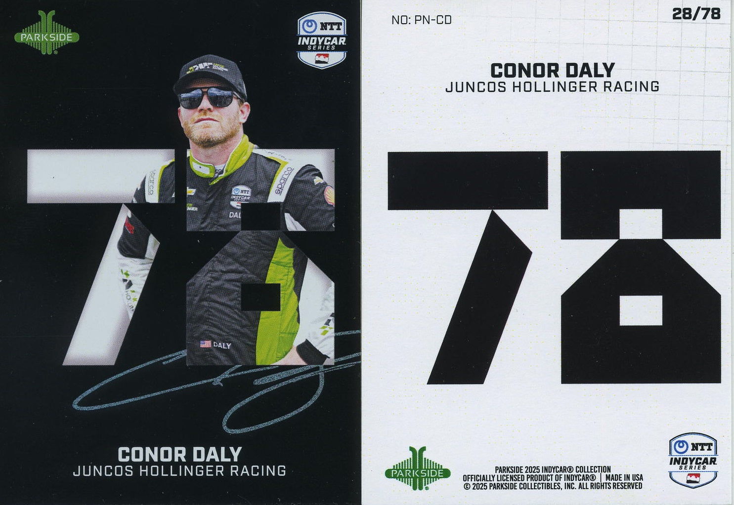 2025 Parkside IndyCar Conor Daly Numeric Card 28 of 78.