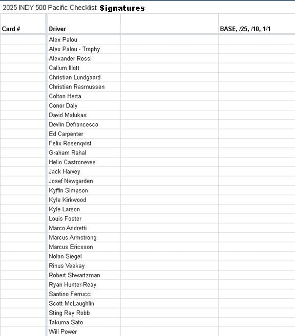 INDYCAR Pacific is Back! The checkered flag is waving, and INDYCAR Pacific is making a triumphant return for its second year! We're back with double the cards from last year, delivering an all-refractors set!