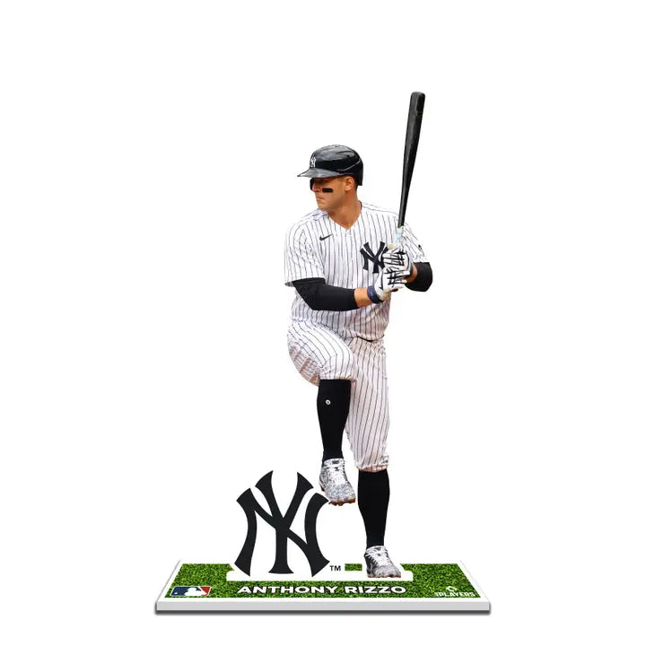 Anthony Rizzo Mlb New York Yankees Player Standee. Showcase your team pride with this Player Standee, a premium collectible that stands out in any collection. These limited edition standees are meticulously laser cut to ensure precision and quality. Featuring dynamic game-action photos, each standee is made of 100% styrene material, providing durability and a long-lasting display. The vibrant graphics in team colors highlight the player's likeness, making it an eye-catching piece. Officially licensed and standing approximately 12" tall, this standee is the perfect way to display your allegiance and enthusiasm for your favorite team. Don't miss out on adding this limited edition piece to your collection—get yours today!