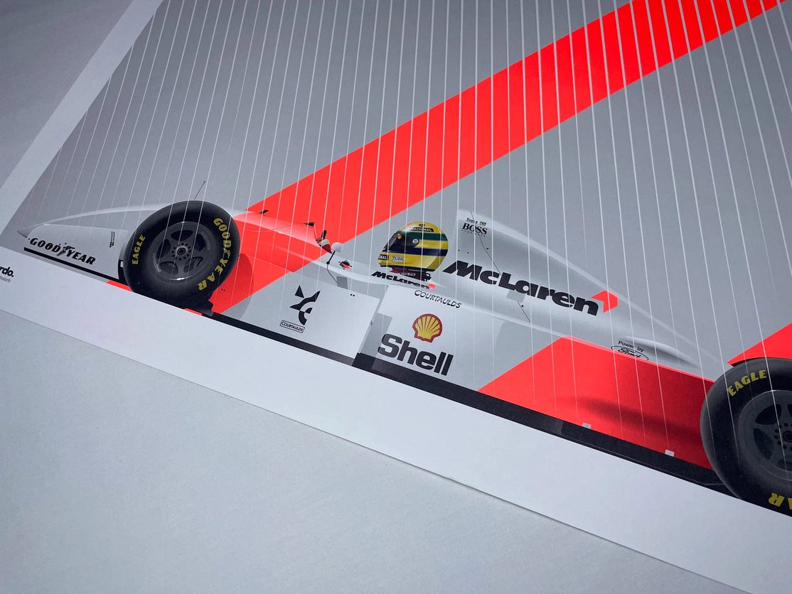 Ayrton Senna, Art Piece Mclaren MP4/8-Ford, European Grand Prix Winner 1993 Signed & Numbered by the Artist.