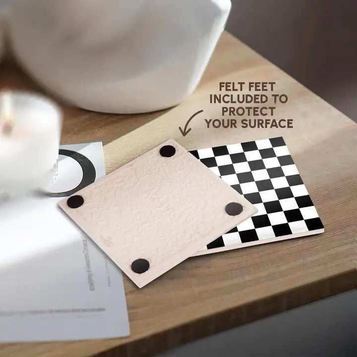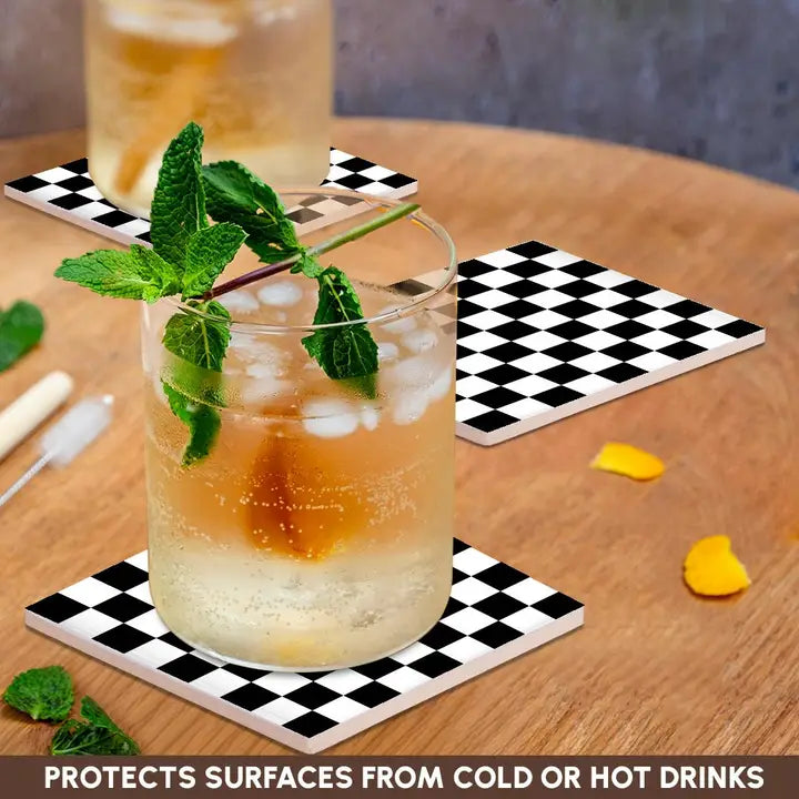 Check Black and White Pattern - Ceramic Checkered Racing Car Race Flag Coaster Set of 4