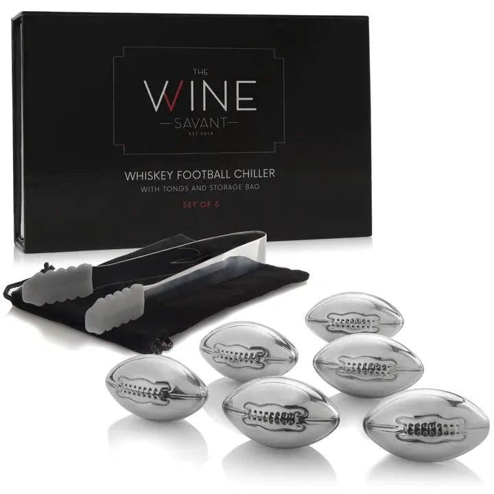 Football Shaped Stainless Steel Whiskey Stones Set of 6