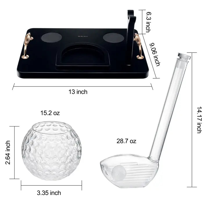 PERFECT FOR GOLF AND WHISKEY ENTHUSIASTS: The Golf Club Whiskey Decanter and Liquor Glass Set is the ultimate combination of elegance and sport-inspired design. Crafted to resemble a golf club, this 29 oz decanter is a stunning addition to any home bar or office, especially for those who love both golf and fine spirits. It’s more than just a decanter; it’s a statement piece that reflects a passion for golf and whiskey. HIGH-QUALITY DESIGN AND CRAFTSMANSHIP: Made from premium, crystal-clear glass, this golf club decanter exudes sophistication and durability. Its unique shape is carefully crafted to highlight your favorite whiskey, bourbon, or scotch, while the accompanying 15 oz liquor glasses complete the set with style. The intricate detailing on the decanter and glasses reflects the precision of a well-crafted golf club, making this set both functional and visually captivating.