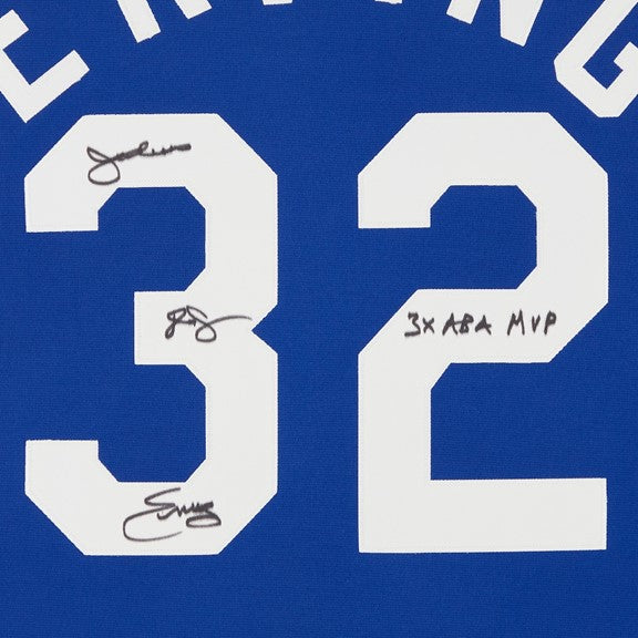 Julius "Dr J. " Erving Framed Authenticated Autographed Mitchell and Ness ABA Jersey with 2 Phots 8x10