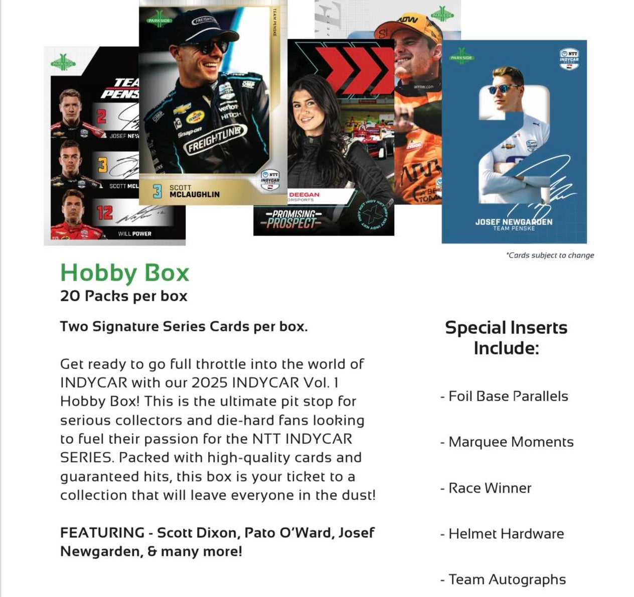 Experience the thrill of INDYCAR racing with our 2025 Trading Card Set – a must-have for fans and collectors! Each pack offers a glimpse into the world of INDYCAR, featuring top stars and emerging legends.