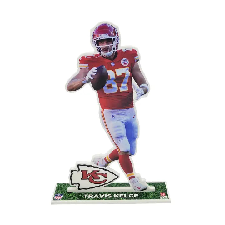 Travis Kelce Nfl Kansas City Chiefs Player Standee. Showcase your team pride with this Player Standee, a premium collectible that stands out in any collection. These limited edition standees are meticulously laser cut to ensure precision and quality. Featuring dynamic game-action photos, each standee is made of 100% styrene material, providing durability and a long-lasting display. The vibrant graphics in team colors highlight the player's likeness, making it an eye-catching piece. Officially licensed and standing approximately 12" tall, this standee is the perfect way to display your allegiance and enthusiasm for your favorite team. Don't miss out on adding this limited edition piece to your collection—get yours today!